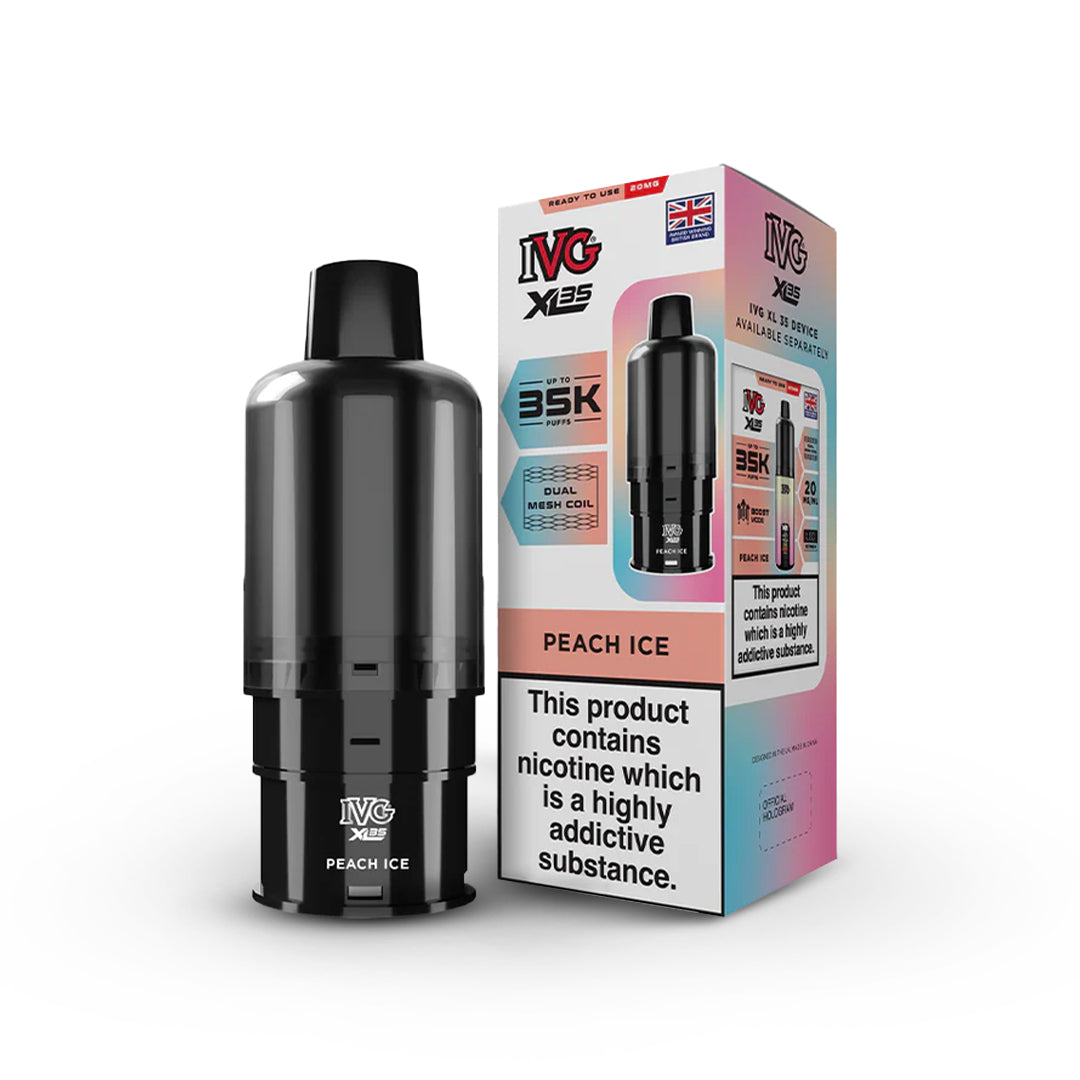 The IVG 35K Replacement Pods from IVG are prefilled pods designed specifically for the IVG 35K vape device. Filled with high-quality nicotine salt e-liquid, they provide smooth nicotine delivery, fast absorption and consistent flavour.